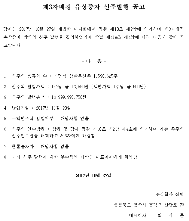 제3자배정 유상증자 신주발행 공고